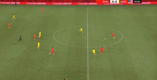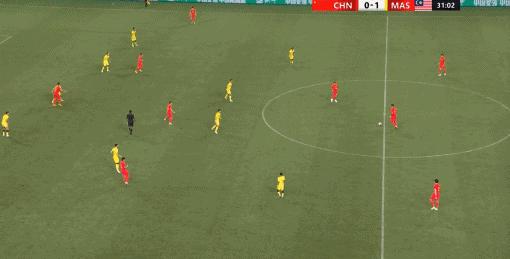 进入30分钟区间,马来西亚的体能有所下降,体现在球场上,就是马来西亚的逼抢力度下降,所以中国队的后卫线又能用直传连接吴曦了: