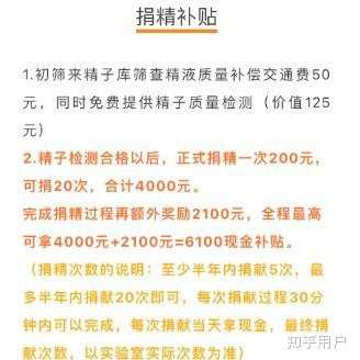 官方回复大赛初衷 具体需要经过「蝌蚪初筛」,检测合格后才能正式捐献,一次捐献补贴 200 元,共可捐二十次,最少半年五次,完成整个过程额外奖励 2100 元,即最高到手 200 × 20 + 2100 合计 6100 元,加上若入选河南赛区「最强选手」「最美蝌蚪」「最佳口感」等荣誉,毕业季简历上可写的奇奇怪怪奖项又多辣,绝对赚到。