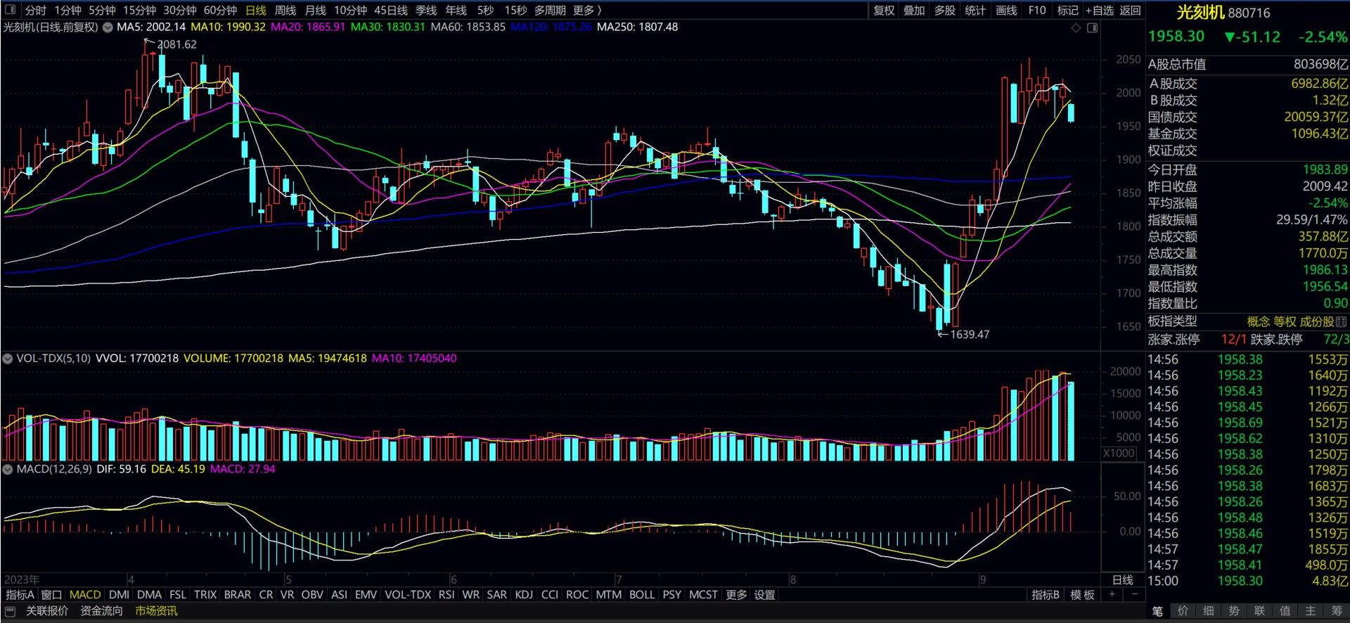 今天情绪强分歧,开盘就很明显了,周五带动盘面修复的光刻机直接低开,605588和600895两个比较有辨识度的都直接大幅度低开。而跟华为概念跷跷板的医药板块则走的相对比较好。明天总体看修复,其中预期华为概念股修复,医药板块分歧。