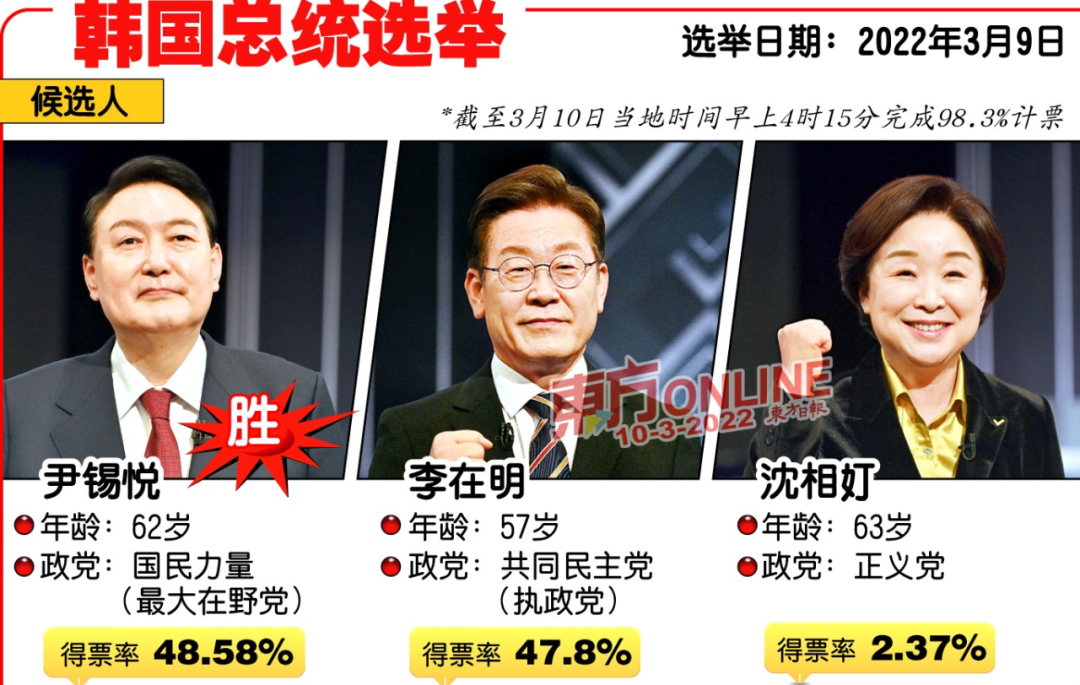 2022年韩国大选时战况非常焦灼,最终尹锡悦以0.78%,不到1%的优势,战胜了李在明