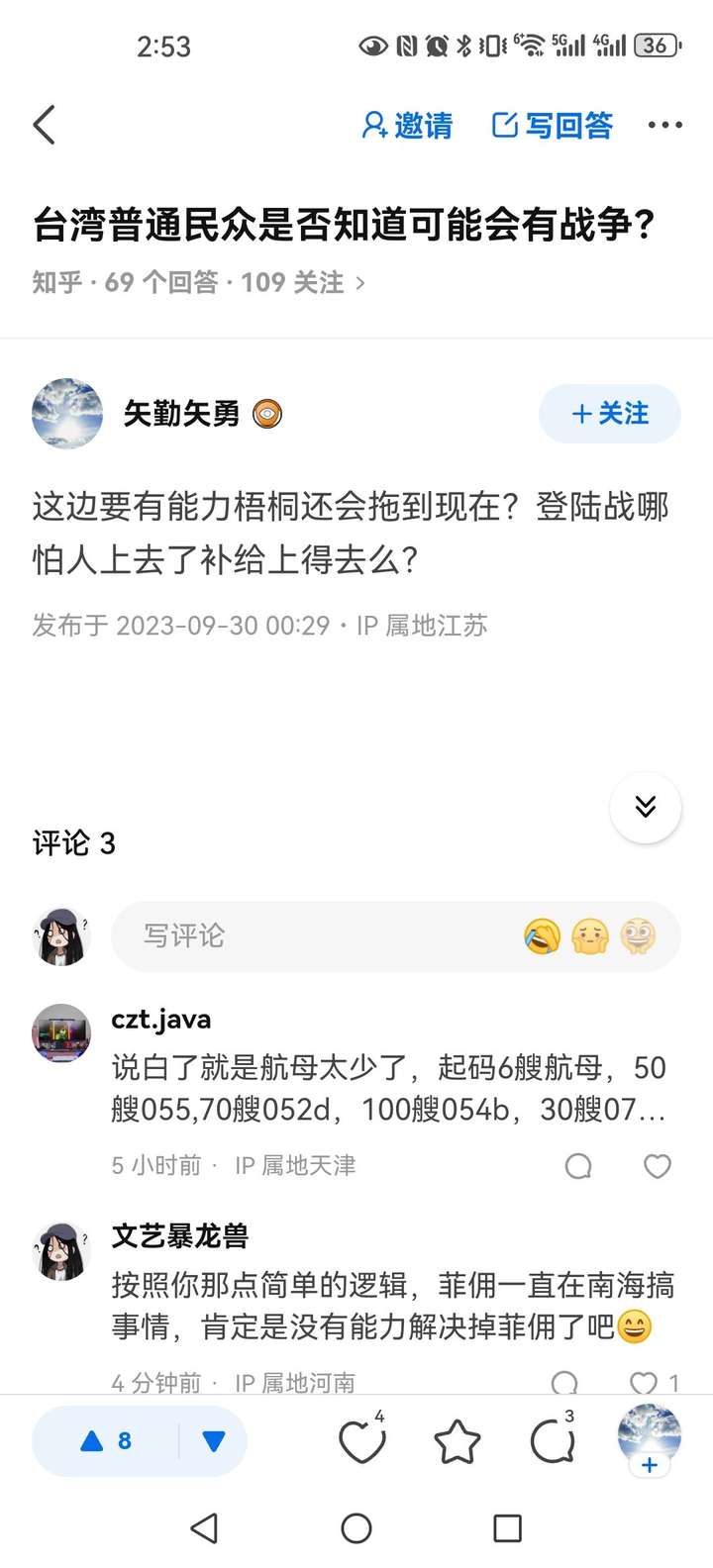 台湾普通民众是否知道可能会有战争?