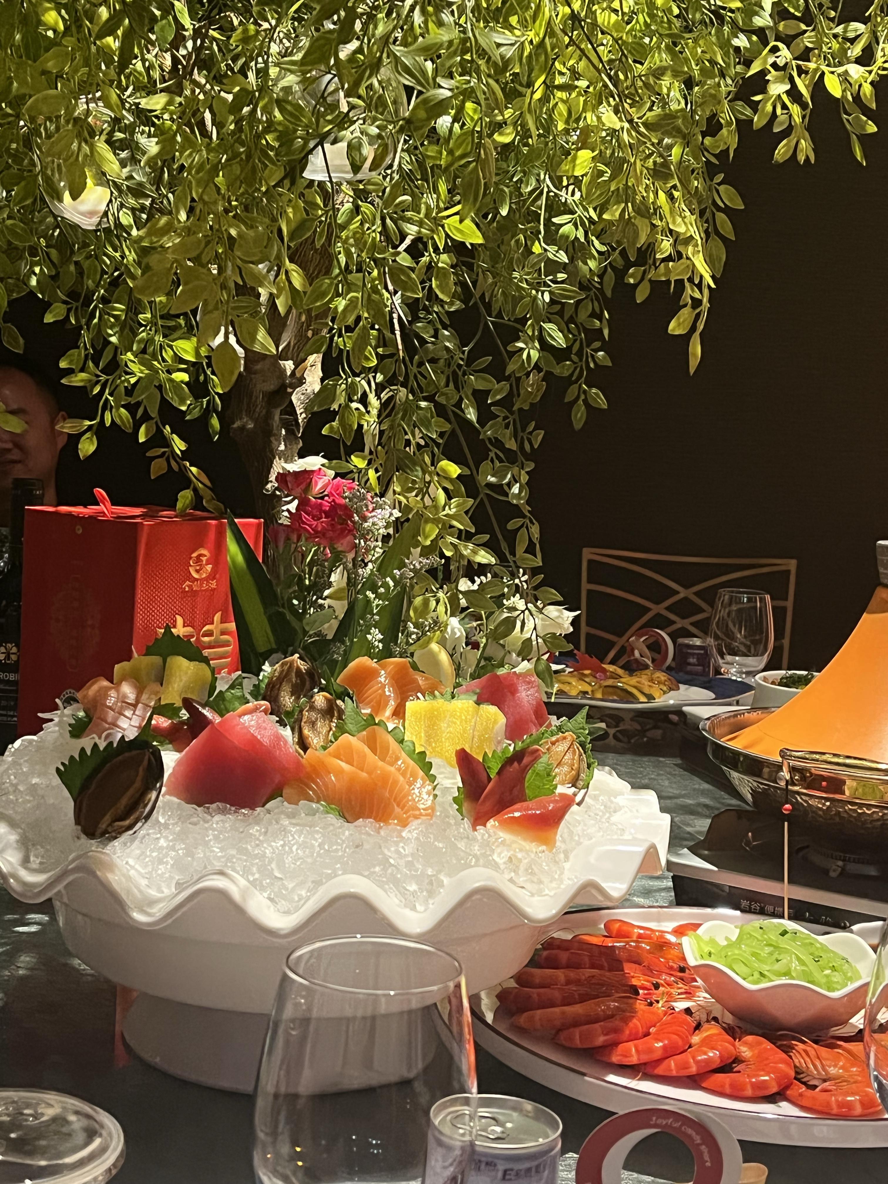 回来一看,鱼肉全没了,只剩几个荧光灿灿的鲍鱼壳和绿色的紫苏……我当场措辞激烈,重申自己立场:强烈谴责日本这种不负责任的行为!