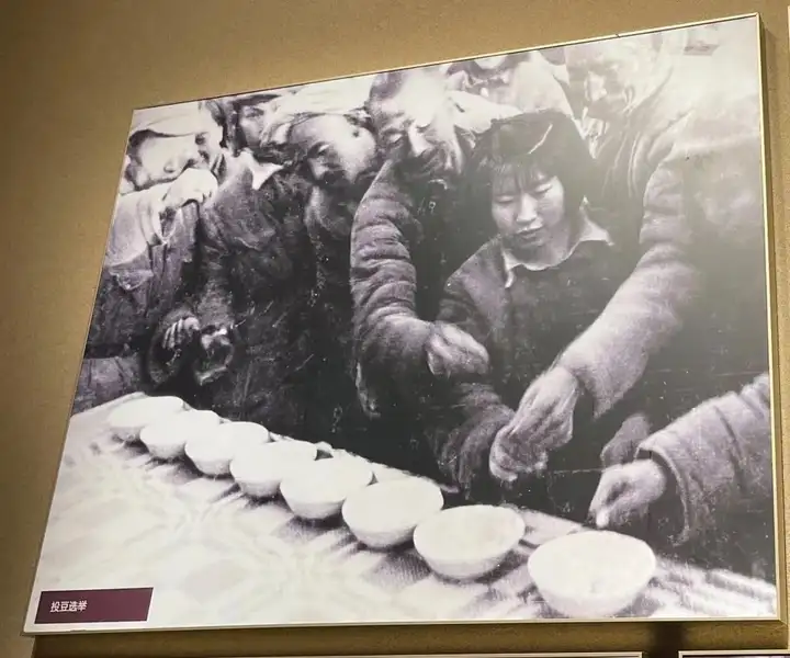 对于群众来说,最有趣的就是投票选举法。“那时候当地的百姓文化水平很低,大多不识字,更别提写选票了。于是诞生了一些有趣的选举方式,最有名的就是投豆选举法。”起初,豆选不是秘密选举。一个个大碗放在被选举人面前,每位代表拿一颗豆子,拥护谁,就把手里的豆子投在谁的碗里头,得票多者当选。但是,没过多久,大家就开始质疑投豆子的公正性,于是,被选举人转过身去,投豆子的大碗放在了被选举人的身后。