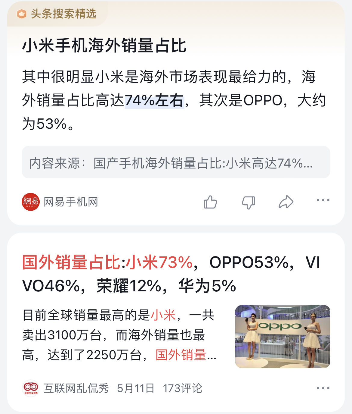 另外需要注意的是文案的数据,一般只提国内的,因为小米74%的销量在国外,ov的数据是oppo 53% vivo 46%。而华为荣耀海外的销量占比是荣耀13%,华为5%,基本就是赚国人的钱。