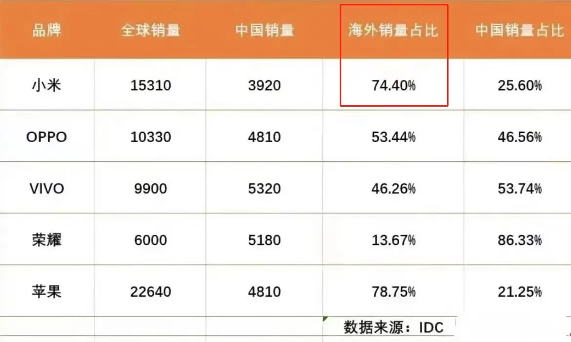 需要注意的是文案的数据,只提国内的,因为小米74%的销量在国外(最高的时候达78%),ov的数据是oppo 53% vivo 46%(苹果中国以外的约88%),而华为荣耀海外的销量占比是荣耀13%,华为5%,基本就是赚国人的钱。