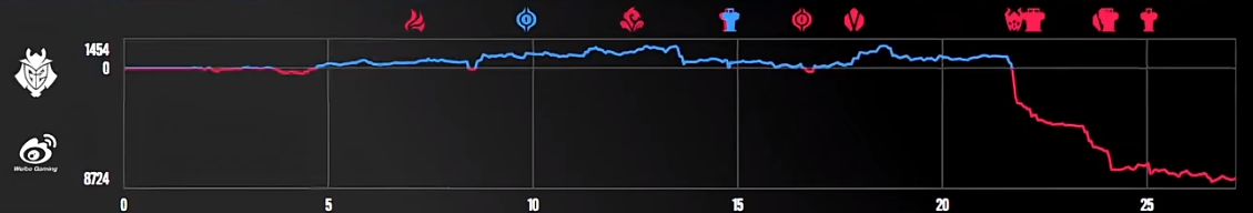 对阵G2的那盘,经济领先都快1W了,硬生生能自己送出去。