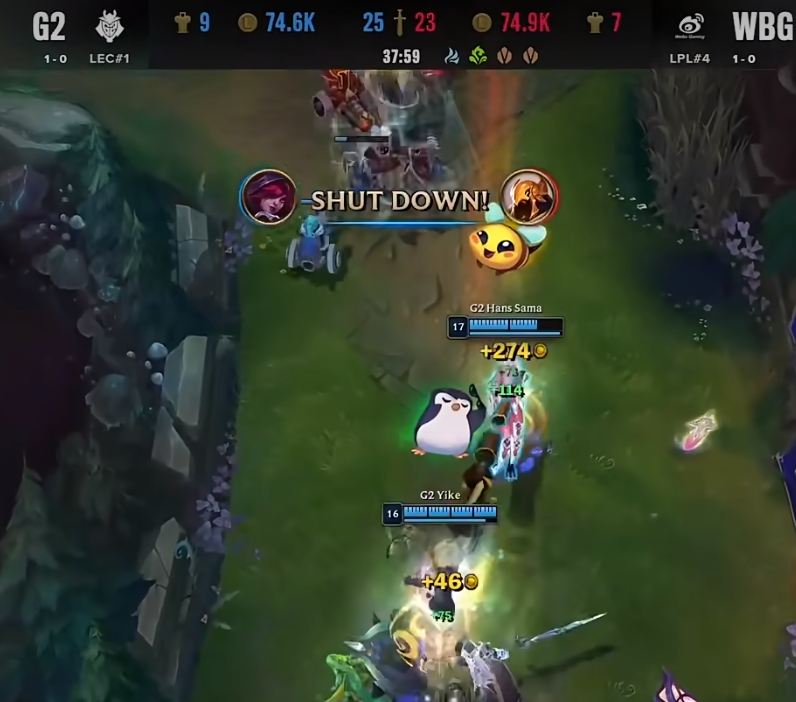 然后在WBG vs KT的比赛中,我们能注意到,KT比起对阵BLG时的偶有失误,已经进步了。打法更加的谨慎,标准的LCK执行力,虽然还是有些机会给到WBG,但是就表现来说,接近GENG了。