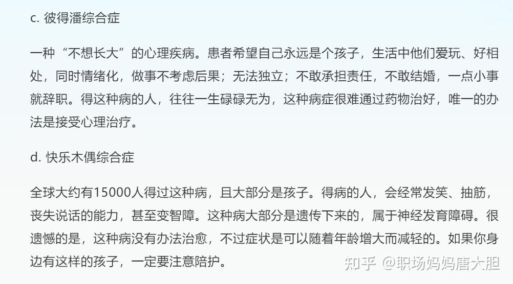 比如说,意想不到的类型有:“香蕉恐惧症”,“快乐木偶综合症”,“彼得潘综合症”,“心碎综合症”;“水过敏症”……