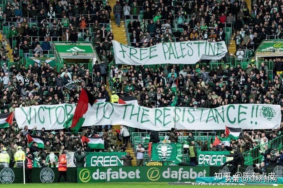 凯尔特人足球俱乐部在赛前发出“禁令”都被直接无视,淹没欧冠赛场的巴勒斯坦国旗国旗已经说明一切。