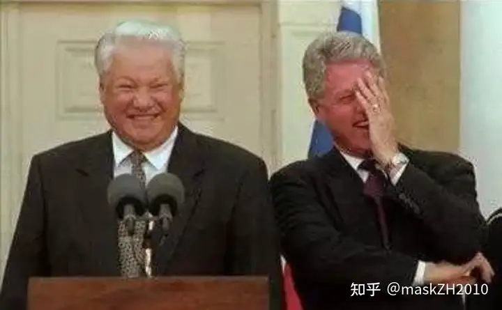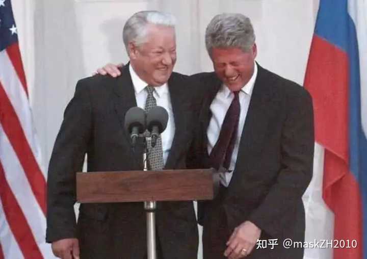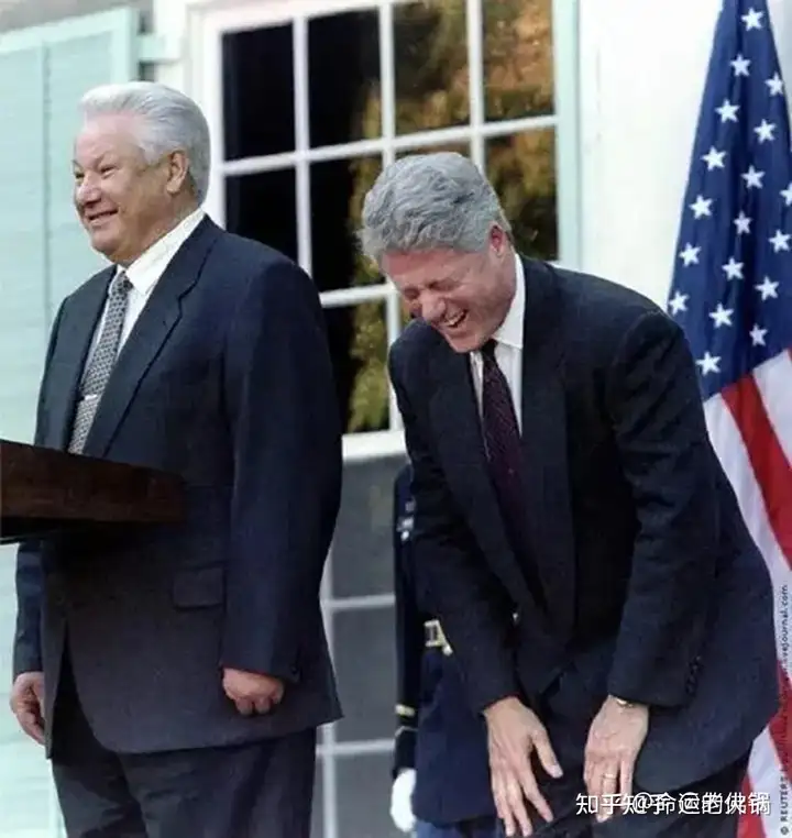当年克林顿拿着叶利钦当猴耍!许那么多愿,结果一项项都落空了!当叶利钦访问美国时,叶利钦在公众面前幻想描述与美利坚将来的美好愿景的时候,克林顿在一旁偷笑的照片还历历在目!就是表明,你这个大傻瓜蛋,“我把你卖了,正在一旁数钱呢?你还蒙在鼓里,一厢情愿的与我们结盟?老美不是什么人都接纳的”!