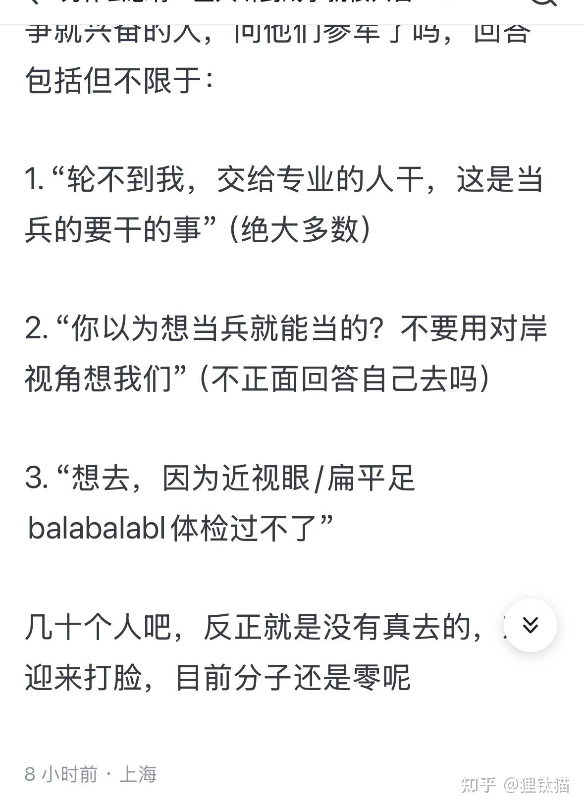 又到了我最喜欢的“粉公好兵”栏目了,一说都是招必回,一问那你去参军了吗?就是“我们参军是要找关系的你知道吗”“专业的事交给专业的人” 他们甚至在网上口嗨一下,都不敢。 这里表扬一下这位,是我知乎问了大几十个人,唯一敢于正面回答的。太难得了 发布于 2025-09-16 13:23・上海 赞同 592145 条评论分享 收藏喜欢 收起