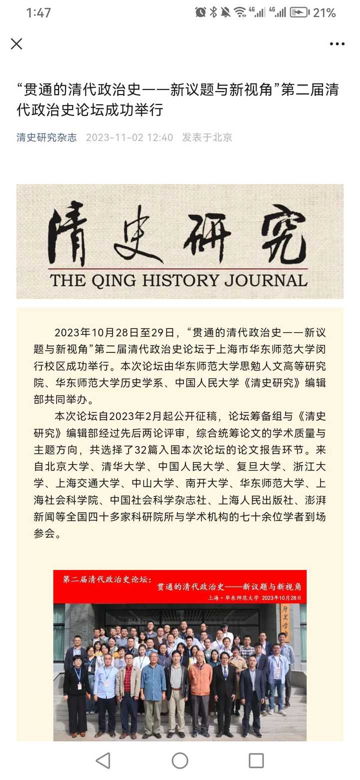 诸位有空可以去读下清史研究所的文章,比如我上面的文字,就是从人民大学清史研究所“学术前沿”复制过来的。