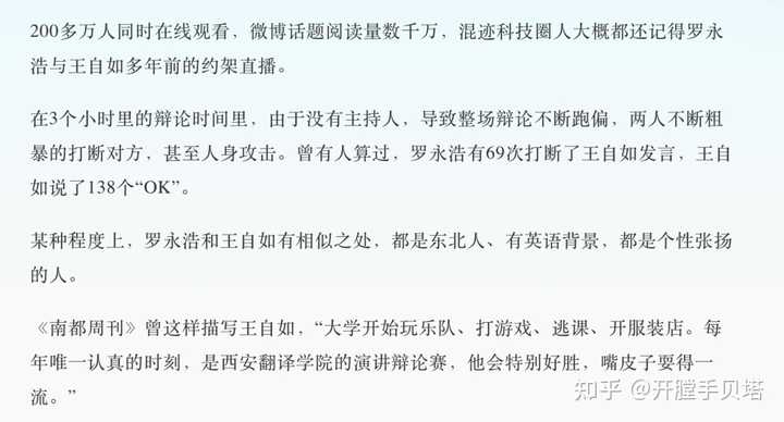 一场论战,留下的也就只有一句罗永浩弯酸他的话——“如果你(指王自如)被包养了,就别谈独立人格。”