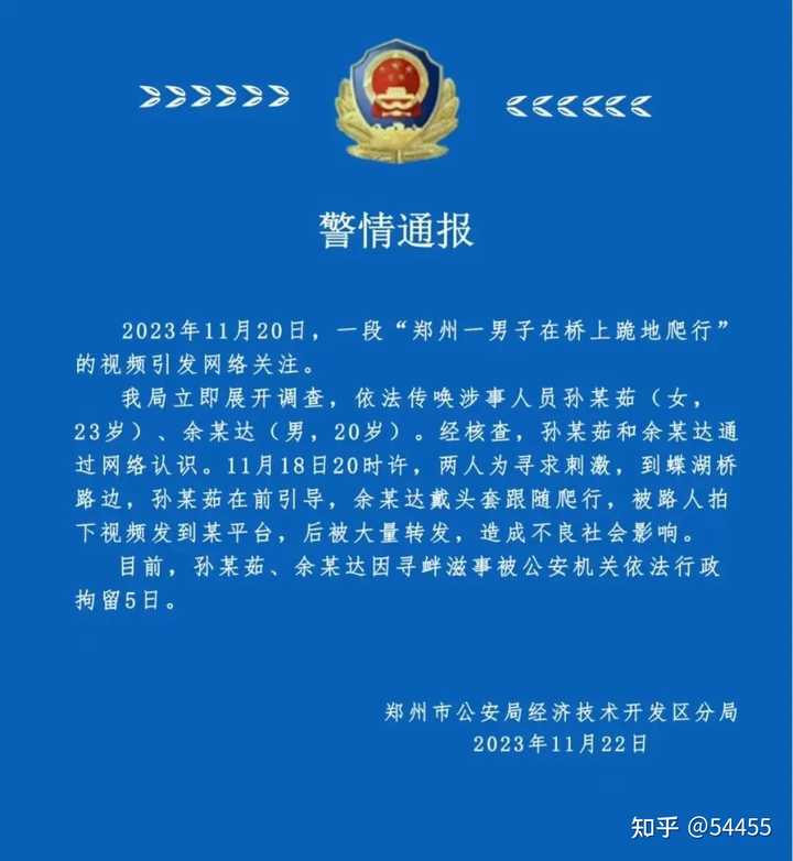 11 月 18日 晚 8 时 20 分左右,郑州一男子脖子上栓绳,戴着狗头头套在蝶湖第十二大街的一座桥上,跪地爬行,一女子拿着鞭子在前面领路,从桥这头爬到那头,...