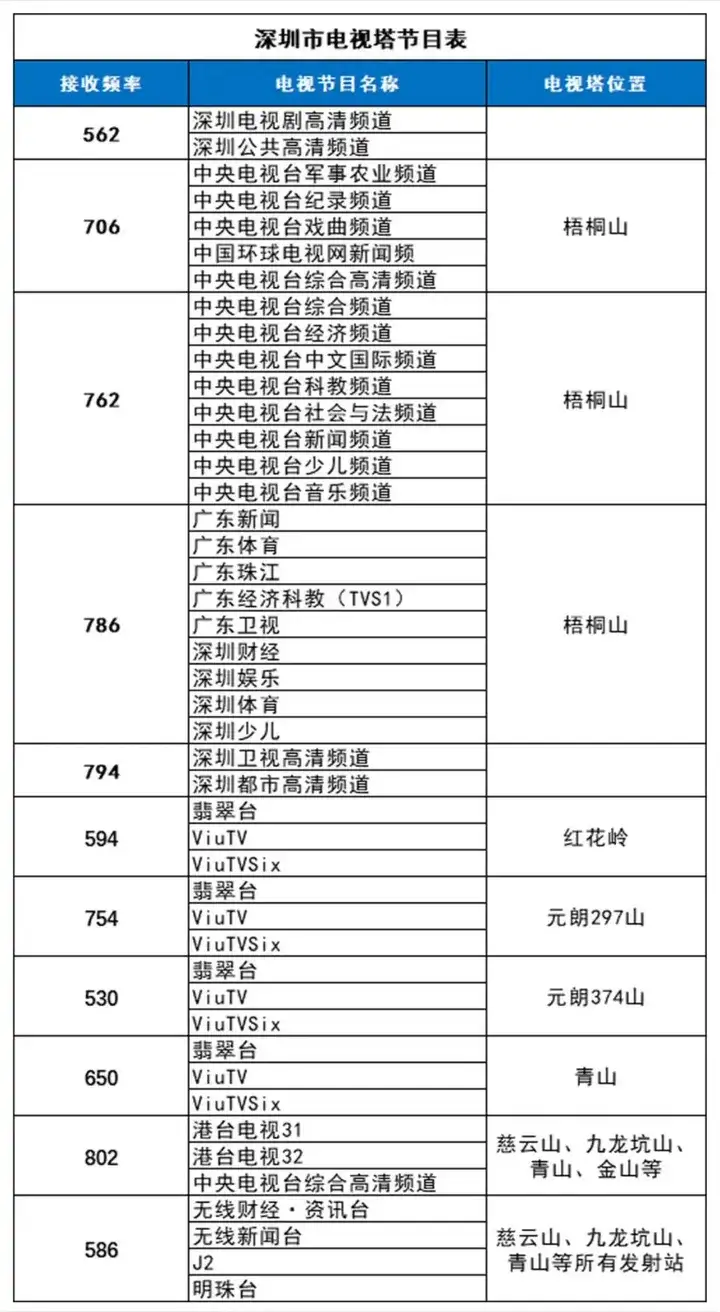 3、无线电视(地面数字电视):免费,以前用天线收,现在也是,DTMB,城市信号不好,需要室外天线;各地接收的台不一样,一通是中央几个台和本省、本市的台。深圳地区可以接收到香港的台。