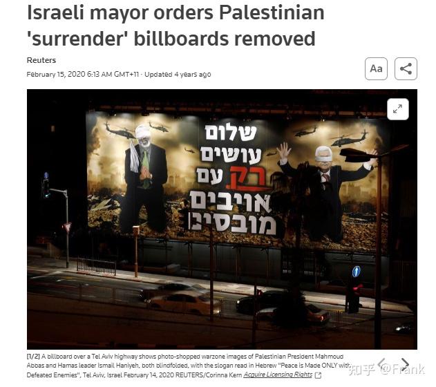 该团体的领导人Ofer Rosenbaum,他在2020年也策划过一幅巨型广告,描述哈马斯领导人哈尼亚和法塔赫领导人阿巴斯被俘虏,广告文字为“只有被击败的敌人才能有和平”。