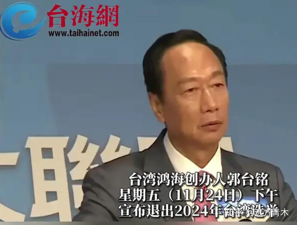 11月24日,台湾地区领导人选举最后登记日,已经获得了90万连署的富士康老板郭台铭宣布正式退出选举。