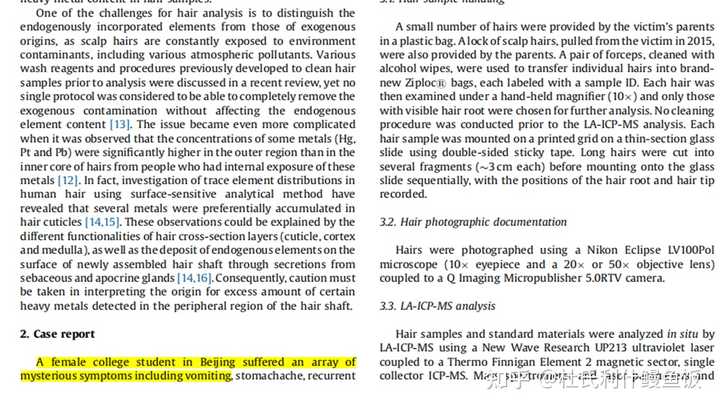 之前帖子居然被删了。我写的东西:现在新的物证出来了,检测朱令掉落的毛发,推断中毒过程。见上图。这篇文章就是说的朱令,致谢里有"the Help Zhu Ling Foundation for logistic assistances"。