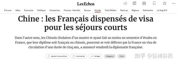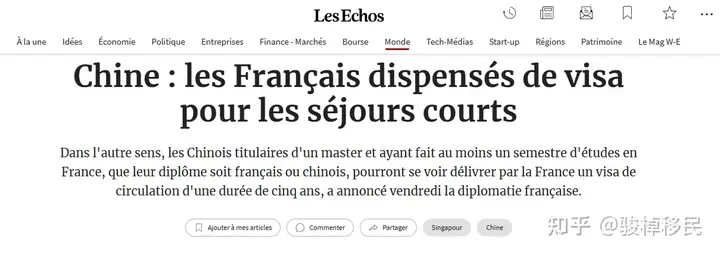 虽然法国未对中国公民实行免签政策,但也对中国的高学历人才给予了充分的认可:法国外交部宣布,持有硕士学历并在法国学习至少一个学期的中国公民,无论其文凭是法国还是中国颁授,都将能够由法国签发为5年期的循环签证。