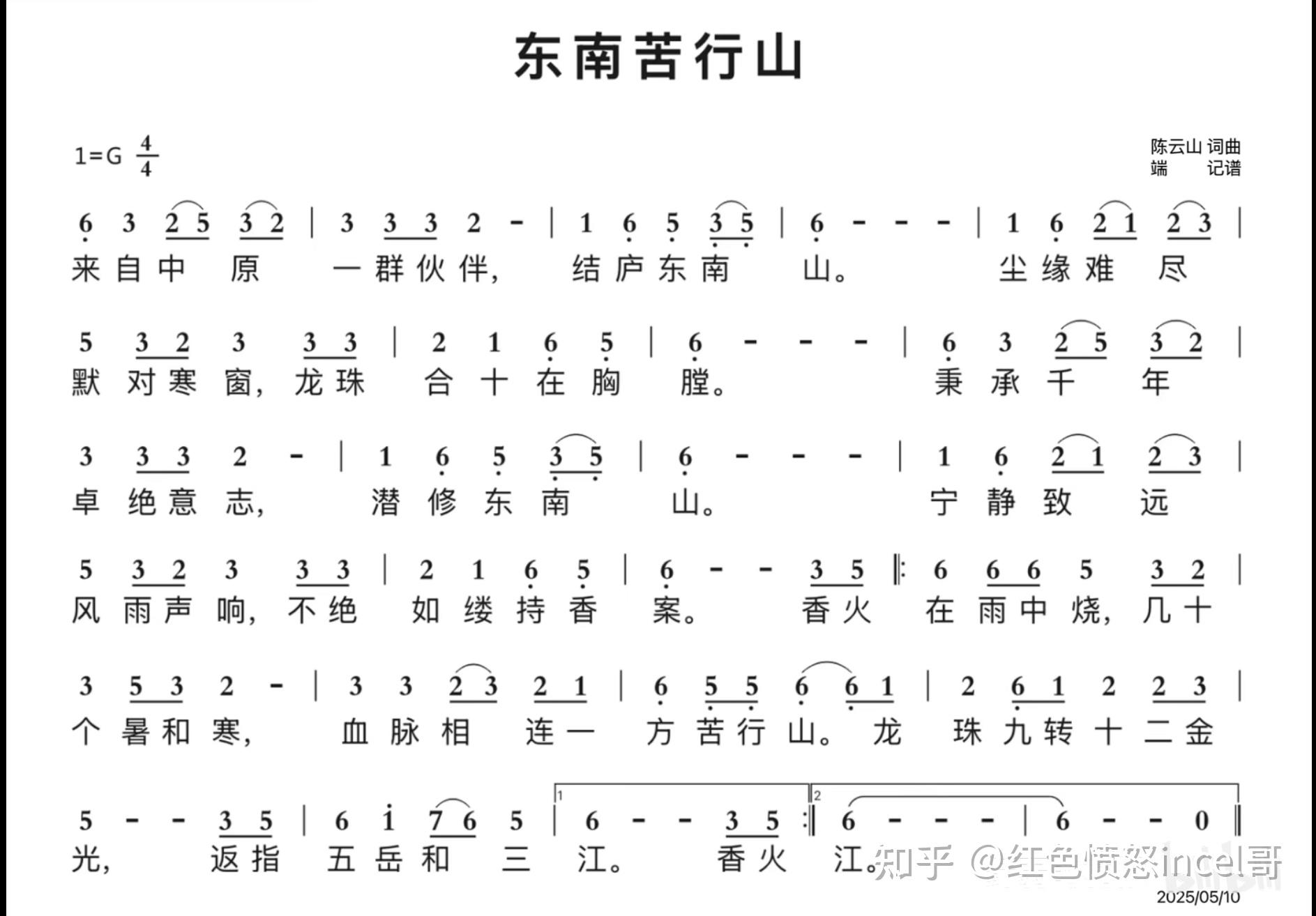 如果有常听这首曲子的知友就会发现,b站上很多用ai填词改编cover东南苦行山的视频,把里面的歌词换到其他的历史苦情势力也会毫无违和感。其实比起东南苦行山的填词,我还是更喜欢君堡苦行山,或者其他更有斗志一点的填词。而且原曲的编曲没有打击乐实在是太可惜了,明明这曲子改成带军鼓的军歌,让一群威武雄壮的士兵一起合唱会更燃的,原曲这种偏民谣的编曲方式还是过于丧了一点,把最后一句旋律走向的气势都浪费了。