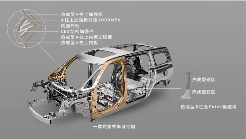 大家都知道三角形是最稳固的,极氪团队给009设计了由双A柱和车身组成的三角形A柱结构。其中前A柱主要为了安装挡风玻璃,倾斜角度大,屈服度低,可以有效保护行人头部,同时缓冲10%的碰撞能量。而通过拆解发现,靠后的主A柱内外板采用1300兆帕的热成型钢,柱腔采用2000兆帕的热成型钢和CBS矩阵结构进行加强,4层架构打造出的主A柱,在纵向(即车身上下方向)和横向(即车辆前进后退方向)两个维度都有很高的强度。在此前网上很火的视频验证了双A柱设计的横向抗压能力,直接撞击大货车尾箱时极氪009 的主A柱都能毫不变形保护了乘员舱空间。此次顶压测试则验证了这个双A柱设计的纵向抗压能力,可以说又一次在实战中经受了考验。