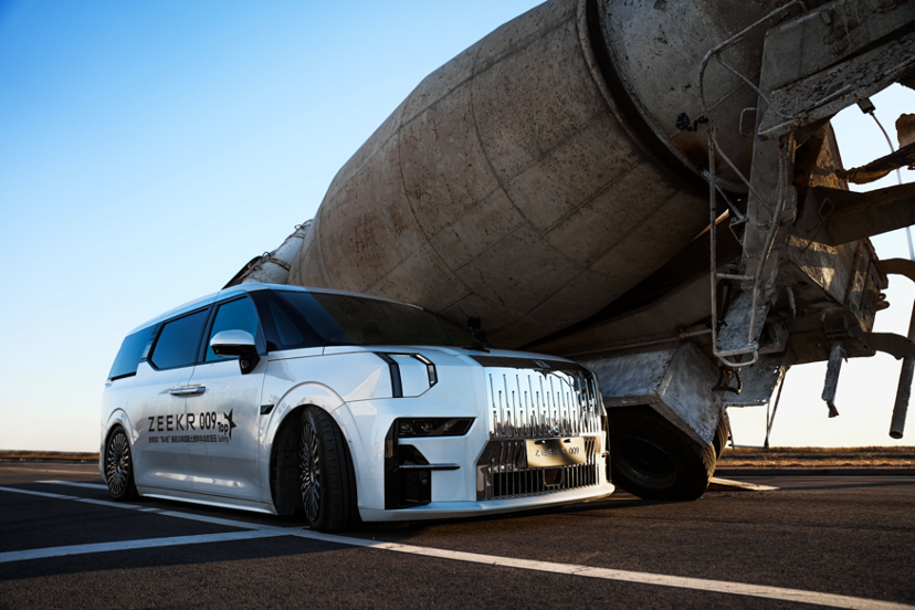 极氪009的30吨混凝土搅拌车侧翻压顶试验,与电池包「超标试验」的性质相似。