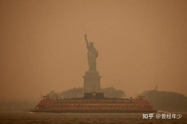比如,美国环境污染严重,摆出一张自由女神像被污染图。
