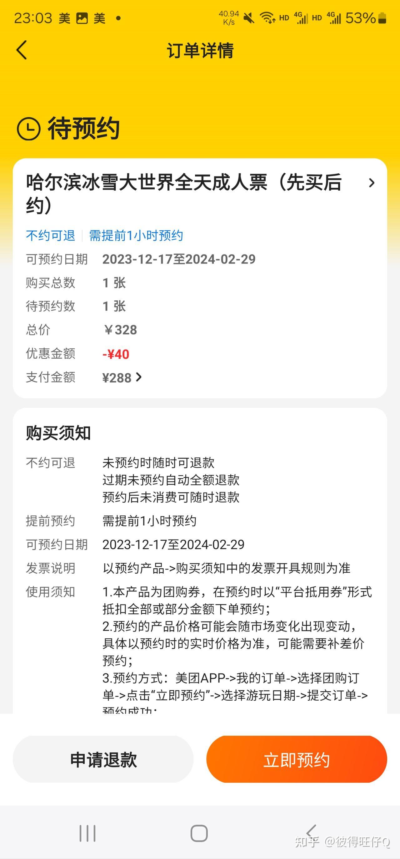 我其实预料到大滑梯摩天轮火了,所以来哈尔滨之前,我特地买了沈阳冰雪嘉年华的票,想的是在沈阳戏雪玩开心了,再去冰雪大世界,这样即使没有坐上大滑梯,也不会亏,两个人,118。滑梯长200米。但我也只是考虑的是我抢不到预约名额,手速不快网不好,你让我预约了还在外面冻着几个小时,当然是断然不可接受的。最后还告诉你预约没用,那不扯淡?