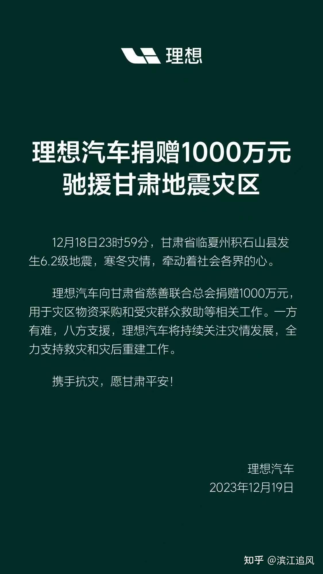 12月18日23时59分,甘肃临夏州积石山县发生6.2级地震,灾情牵动着全国人民的心。地震发生后,多家车企第一时间宣布驰援灾区。