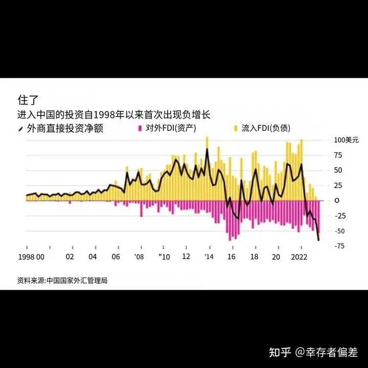 到了2023年,外国投资净流出1103亿欧元。大约1200亿美元左右,是负值。是实体产业转移。