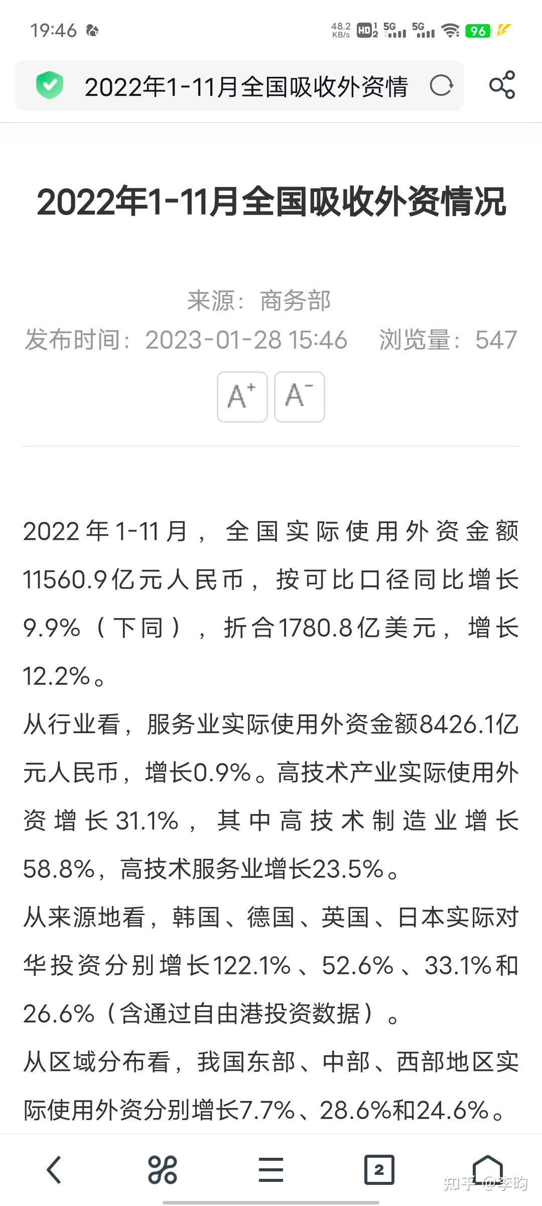 如何看待我国2023年1-11月全国吸收外资1.04万亿元人民币 同比下降10.0%?