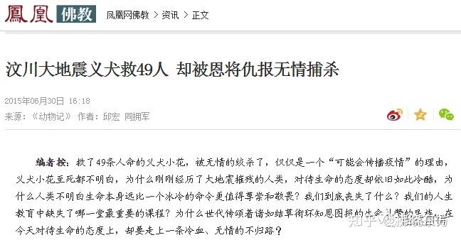 媒体造谣汶川地震义犬小花救了村民之后,出于防疫需要被无情捕杀。