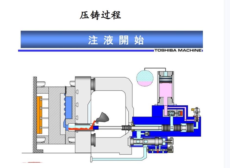 好,不开玩笑了,继续讲压铸,如果要把压铸流程简单化,这里用东芝压铸机的培训资料来用一用