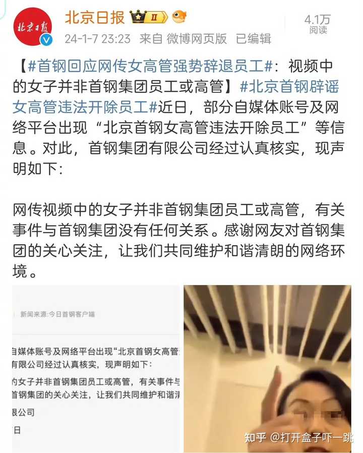 首钢站出来辟谣女高管违法开除员工了,让我们再一次恭喜这位飞扬跋扈的大姐喜提2024年首个全网职场热搜!