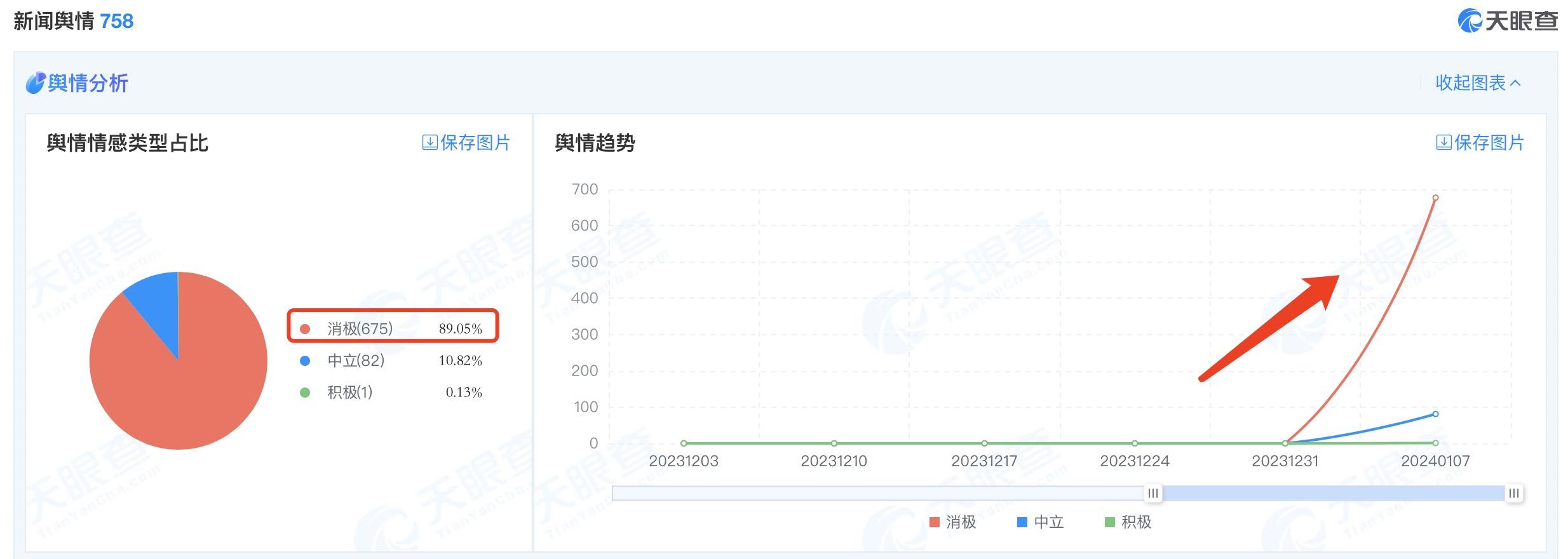 天眼舆情分析显示,该公司消极新闻占比达到89%。