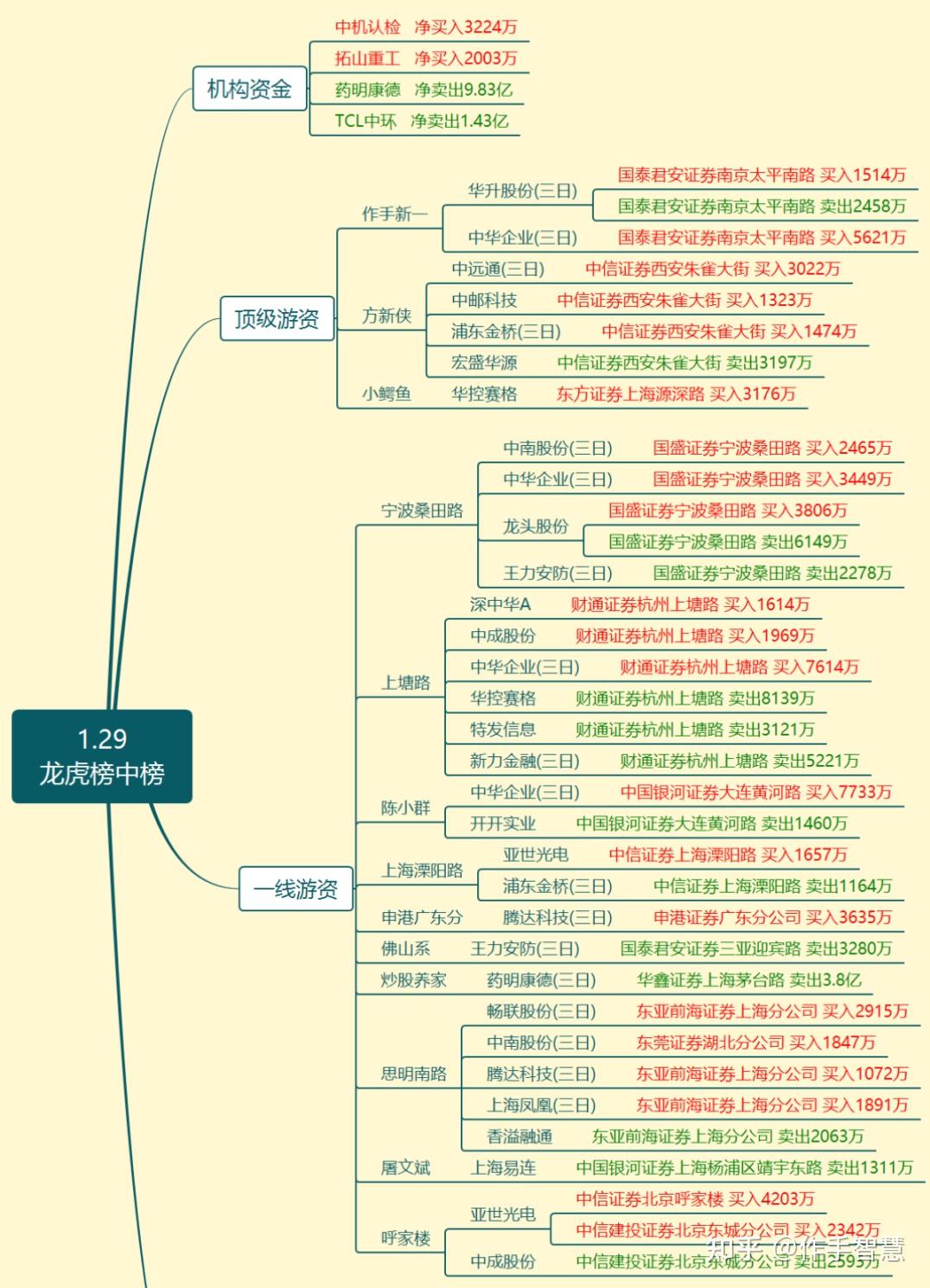 机构买入中机认检、拓山重工,卖出药明康德、TCL中环;作手新一买入中华企业(三日),做t华升股份(三日);方新侠买入中远通(三日)、中邮科技、浦东金桥(三日),卖出宏盛华源;小鳄鱼买入华控赛格;宁波桑田路买入中南股份(三日)、中华企业(三日),卖出王力安防(三日),做t龙头股份;上塘路买入深中华A、中成股份、中华企业(三日),卖出华控赛格、特发信息、新力金融(三日);陈小群买入中华企业(三日),卖出开开实业;上海溧阳路买入亚世光电,卖出浦东金桥(三日);申港广东分买入腾达科技(三日);佛山系卖出王力安防(三日);炒股养家卖出药明康德(三日);思明南路买入畅联股份(三日)、中南股份(三日)、腾达科技(三日)、上海凤凰(三日),卖出香溢融通;屠文斌卖出上海易连;呼家楼买入亚世光电,卖出中成股份;宁波和源路买入长江投资(三日);92科比买入浦东金桥(三日)、清源股份(三日),卖出上海易连;低位挖掘买入中科磁业,卖出九鼎投资;指数再度走弱,遍地天地板。