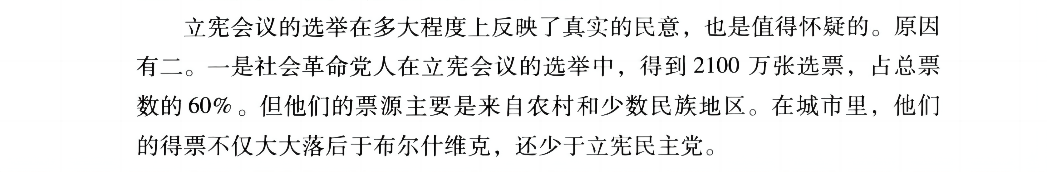 立宪会议的选举在多大程度上反映了真实的民意,也是值得怀疑的。原因有二。一是社会革命党人在立宪会议的选举中,得到2100万张选票,占总票数的60%。但他们的票源主要是来自农村和少数民族地区。在城市里,他们的得票不仅大大落后于布尔什维克,还少于立宪民主党。