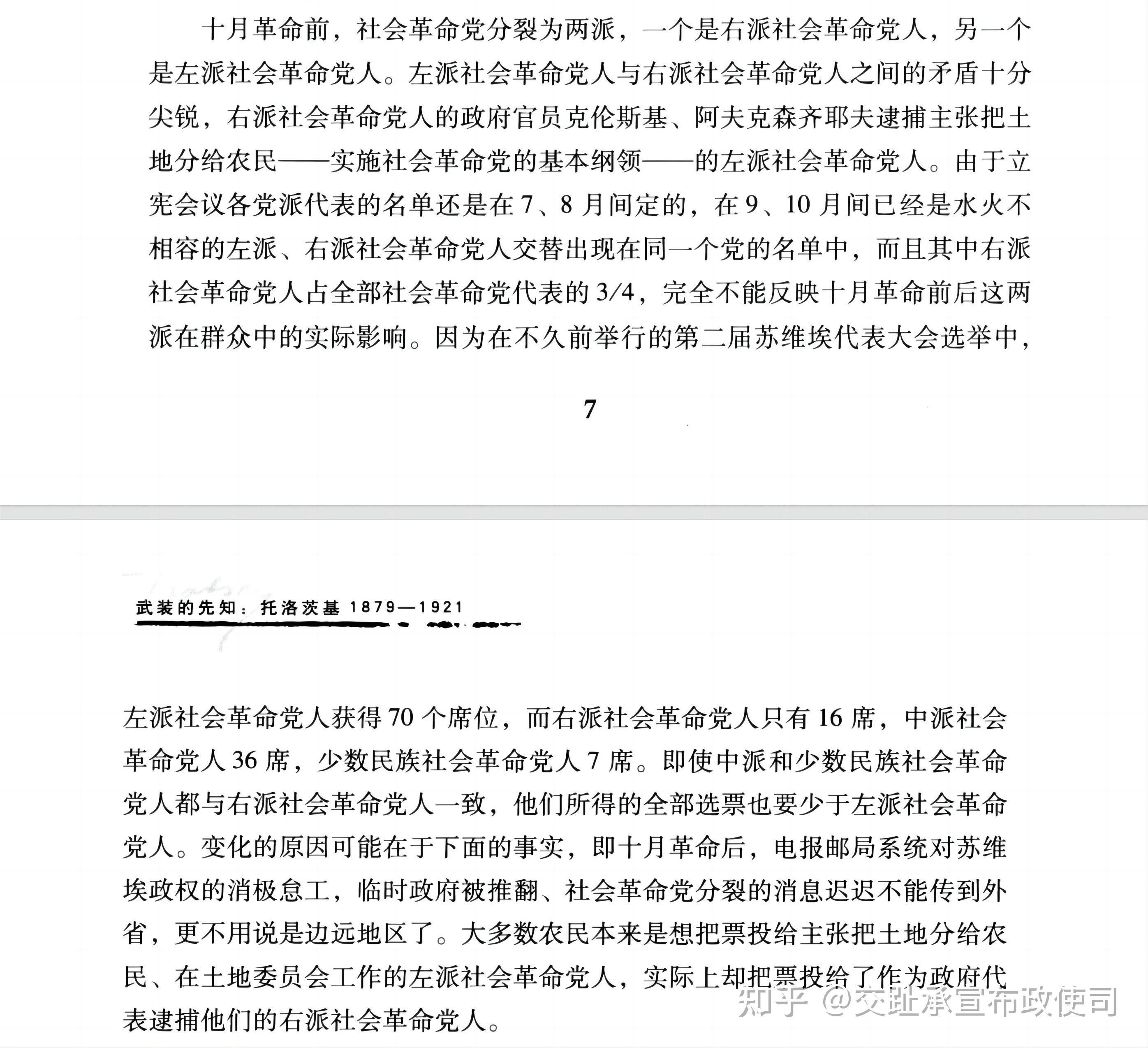 在不久前举行的第二届全俄苏维埃代表大会表明,社会革命党作为执政党在2—10月间的表现,以及社会革命党人任总理的政府在后来几个月中的所作所为,已经使它声誉扫地。工人阶级和它的武装——赤卫队——对它深恶痛绝,军队的绝大多数也支持布尔什维克,在10月中旬,当布尔什维克成为全国各主要苏维埃的多数时,右派社会革命党人已经退出苏维埃。一个仅靠农村人口庞大的基数而成为多数的党,甚至支持它的农民也主要来自边远地区,而在城市和军队中都得不到支持的党,在主要行政资源都来自城市的现代社会中,能组建一个什么政府呢?肯定不会是该党一直叫嚷要建立的强硬政府,而是一个软弱无力的政府。指望这个政府来解决和平和土地问题,肯定是不行的。一个执政几个月的政党,连它的基本纲领——把土地分给农民——都不能实施,甚至连为实施它的准备都不做,只是一味地把它推给立宪会议。这样的党即使让它再次组阁,它又能做什么呢?在它过去为苏维埃的多数派和执政党的六个月中已经给出了答案。这个事实不会因为这个党在立宪会议的选举中获得多数而改变,何况这个多数本身也是有疑问的。