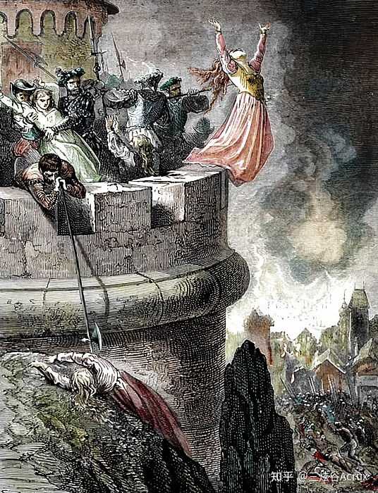 ”随后发生的并不是战斗 因为他们没有能力抵抗 这只是一场屠杀 龙骑兵手持长剑进入 挥砍着所有他们能触及的人 而其余的部队驻扎在窗前 迎接那些跳出剑尖的人” ——大仲马 [14]