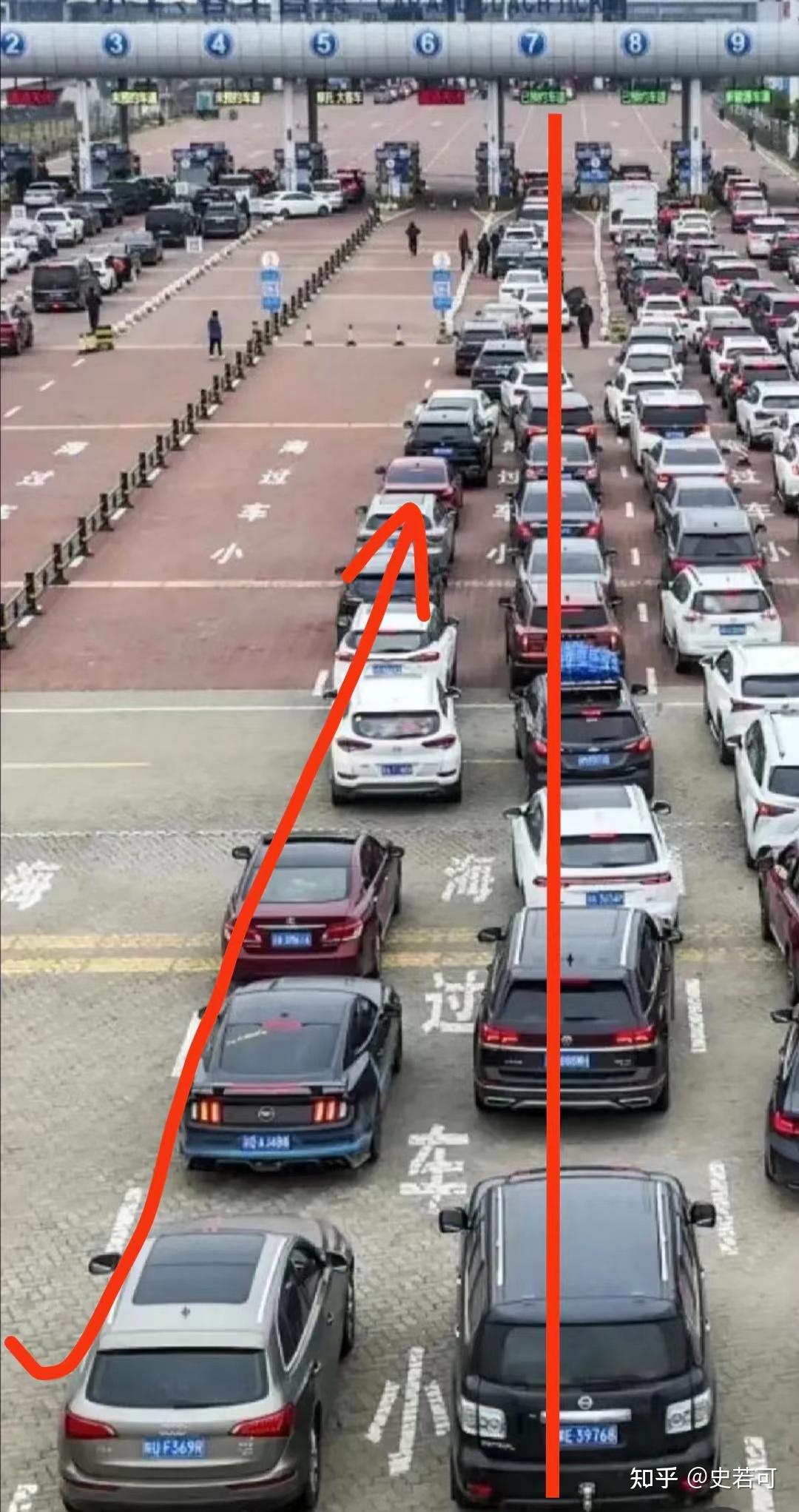 2.奇瑞排的队本来是在4号-5号通道之间,后来是怎么横穿好几个通道,跑到奔驰所在的第7通道去加塞的?