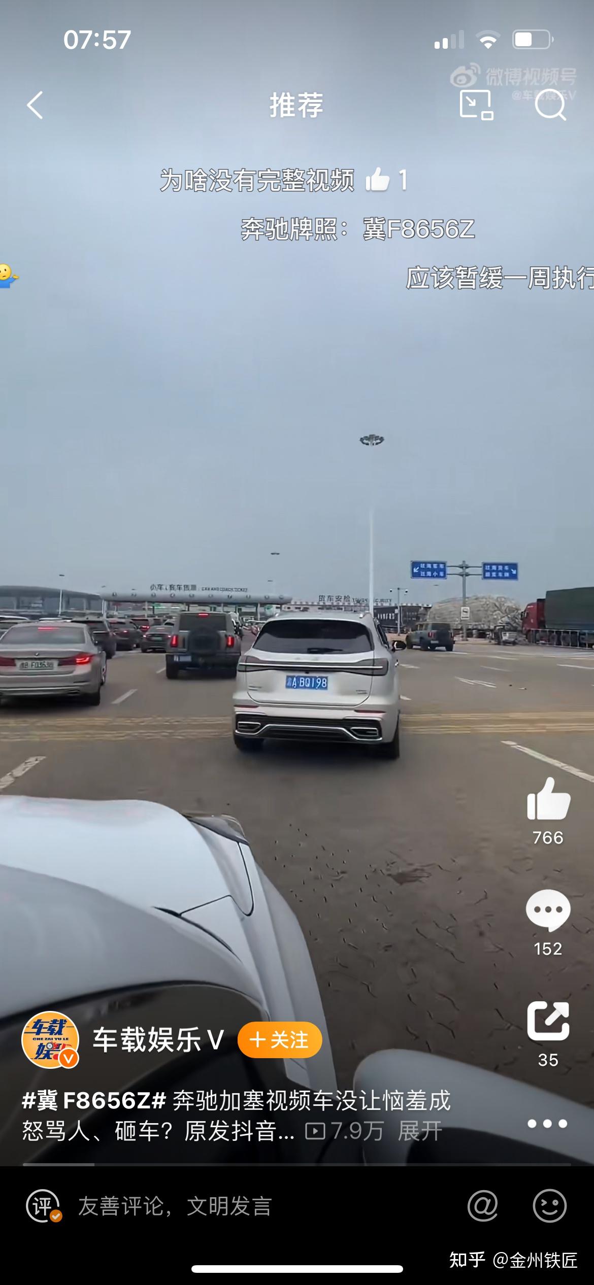 这是奇瑞镜头。奇瑞本来紧跟银车,银车向右转向去加塞车队,奇瑞保持直行跟上了坦克。而后来奔驰正是在银车后面,奔驰红旗起亚,都是没有保持依次通行,而是向右变道去了加塞的那一队车。