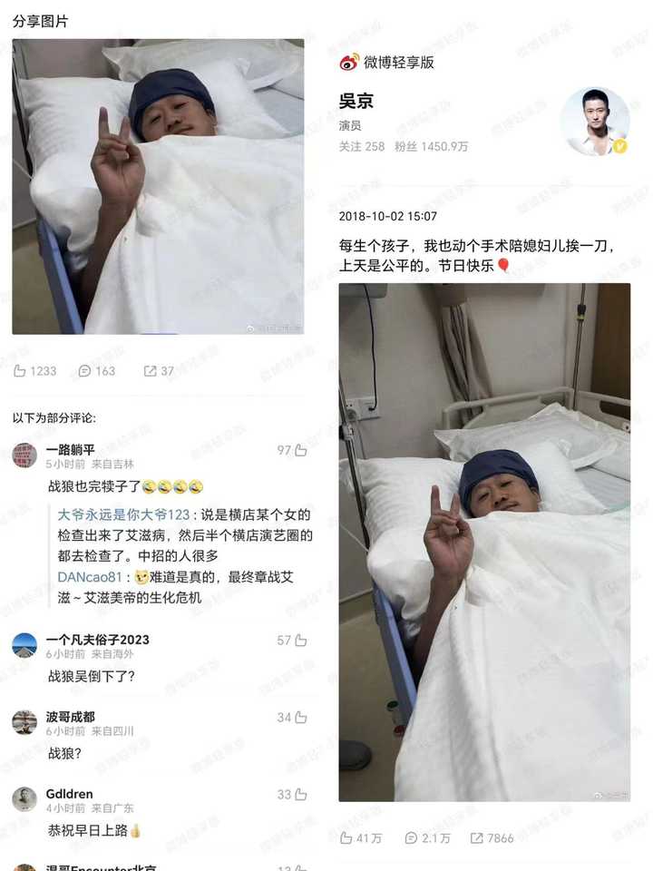 对了,我去看了一下这个“吴京住院”的谣言来源,发现来自于一位微博的俄乌大V崔C浩,注意关键词:「作家」——其人也有意思,曾任《晶报》副主编,上世纪50年代,其亲人因倒卖抗美援朝物资被枪毙,故创建多个马甲在网上不停地带节奏,属于“言论自由”的典型案例。