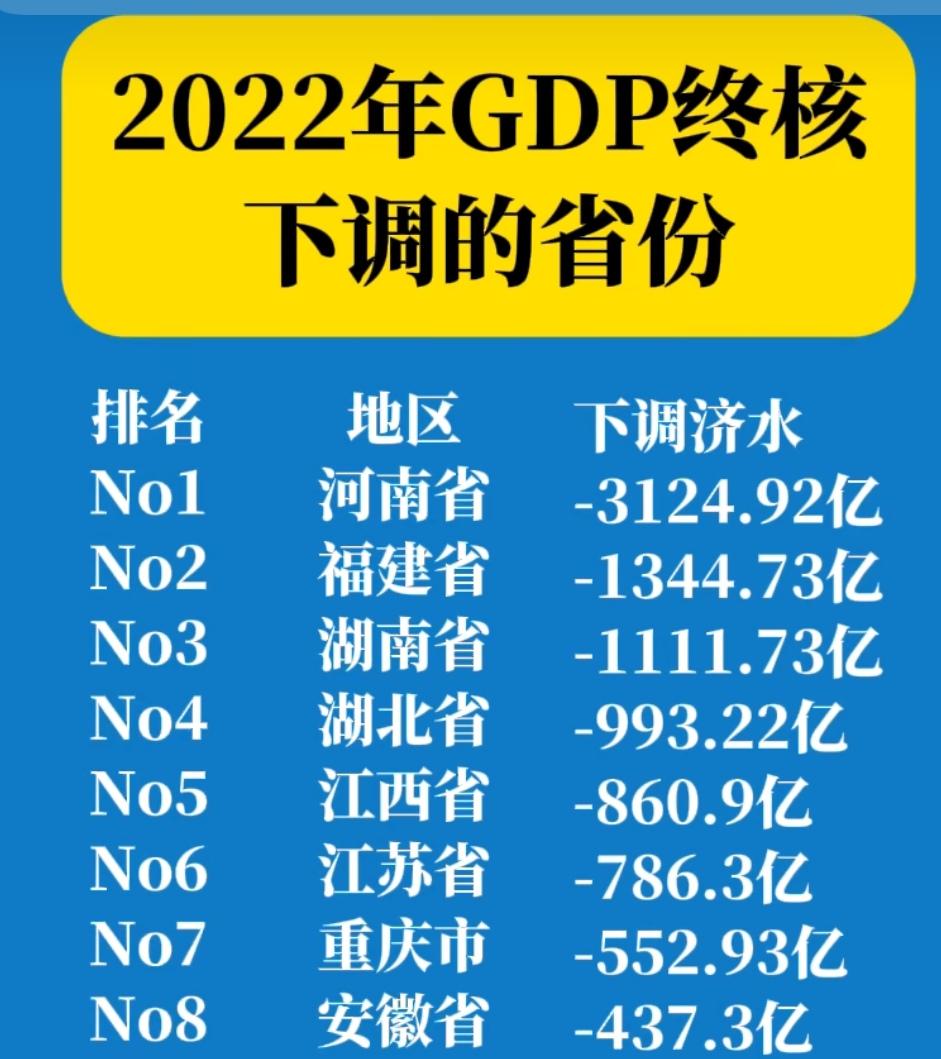 河南、湖北、湖南、江西、安徽等中部地区全部下调了上一年的GDP总量。