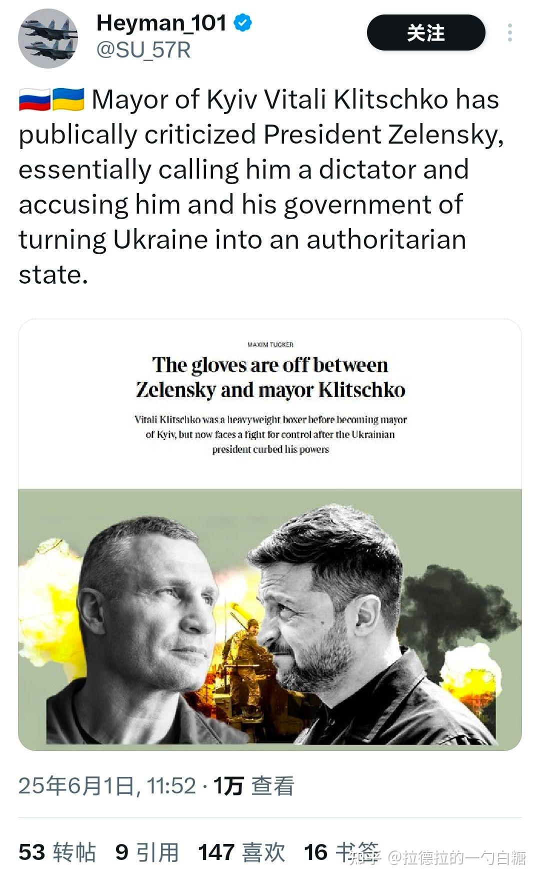 泽连斯基连波罗申科时期任命的基辅市长维塔利•克里琴科都搞不定,明争暗斗斗了6年了……