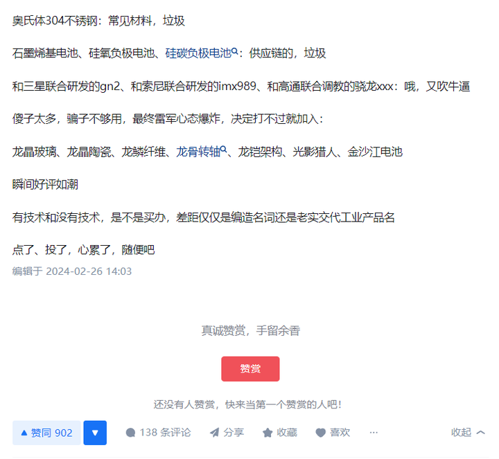 比如下面这个回答,今天你在知乎,微博,B站,都能看到类似的评论,核心思想就是华为的手表也用了微晶陶瓷。。。
