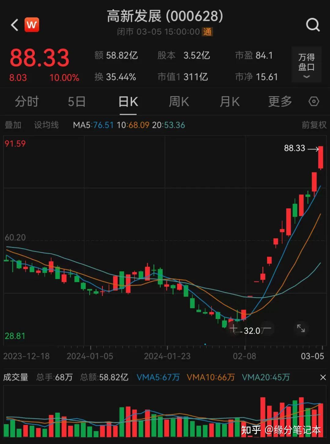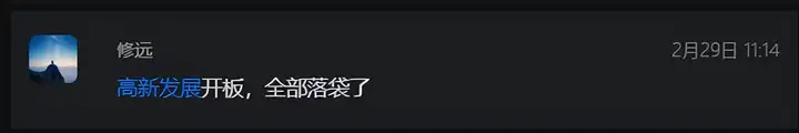对于高新发展来说,现在就是头铁选手的了,头铁的资金硬上就能涨,没有先手的现在已经下不去手了,对于这个大趋势只能眼睁睁的目送,而我是那个卖飞两个板拍断大腿的大冤种。