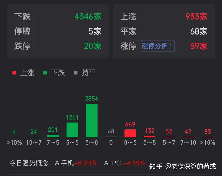 今天指数依然小幅度震荡,但是下跌的个股达4000多个,赚钱效应还是比较差的。题材股方面,走势比较好的是AI和消费电子板块;其中AI板块早上冲高后下午回落不少,明天估计还是继续分歧的可能性比较大。预期明天分歧为主。