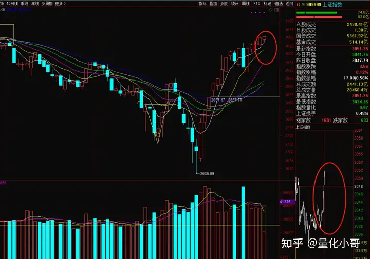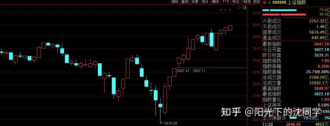 上证指数上午最高点3048,已经接近3050-3150区间,直接往上不是不可以,就是不够稳定