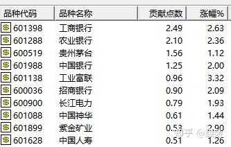 银行、保险、白酒、电力上涨,强行拉红了上证指数,我们看一下点数贡献排行榜,探寻走势背后的真相。