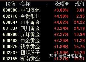 今日中润资源涨超9%,金贵银业涨近5%,山东黄金、四川黄金等跟涨。